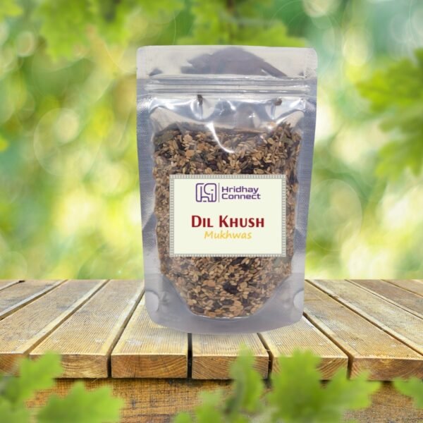 Dil Khush Mukhwas by Hridhay Connect – a traditional homemade Ayurvedic mouth freshener made with natural ingredients for freshness and healthy digestion after meals.