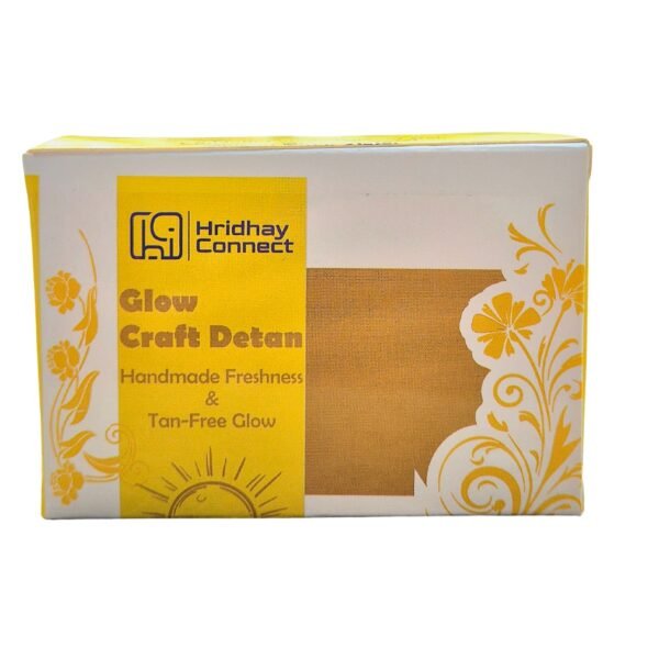 Glow Craft Detan Soap by Hridhay Connect – a natural Ayurvedic soap that removes tan, brightens skin, and nourishes with herbal ingredients. Chemical-free skincare.