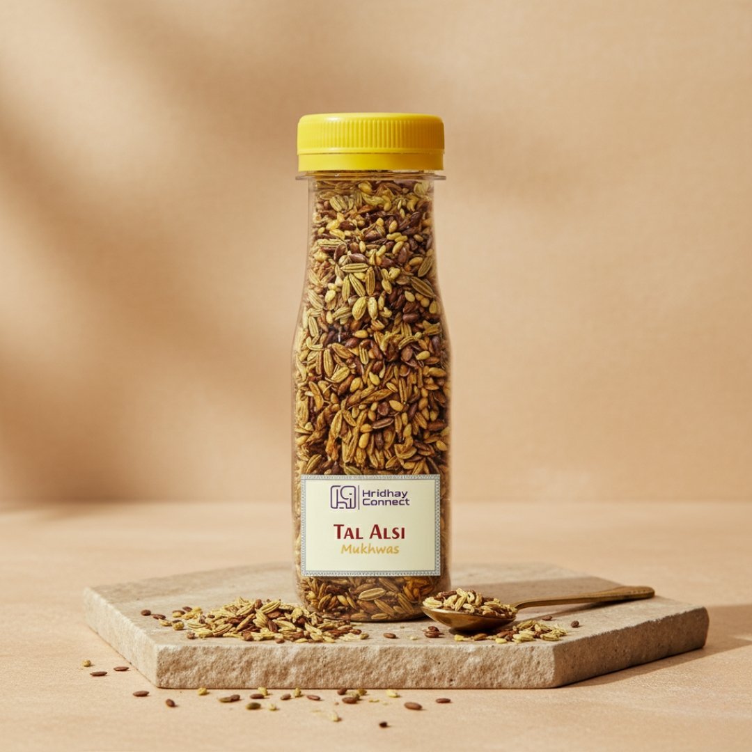 Tal Alsi Mukhwas by Hridhay Connect – a nutritious homemade Ayurvedic mouth freshener made with sesame and flax seeds for freshness, taste, and better digestion.
